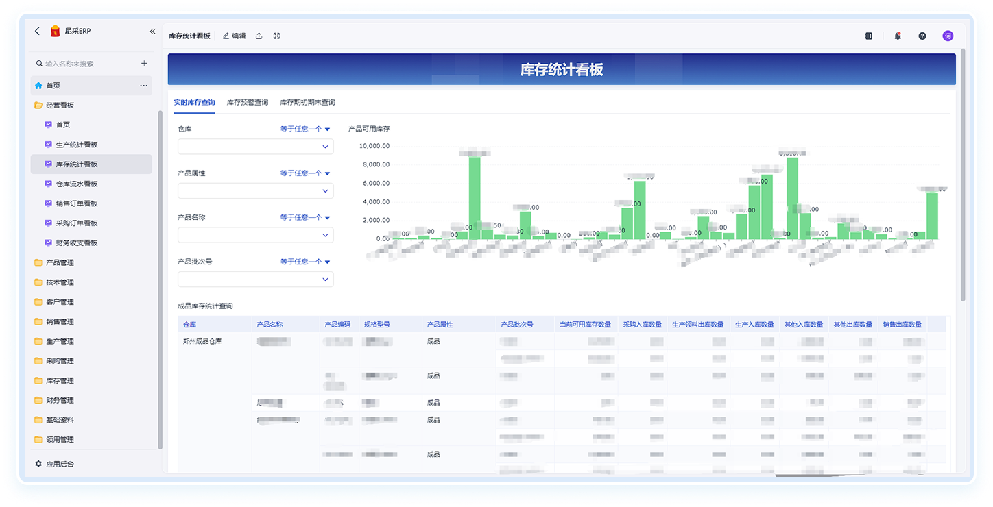 实时库存监控,智能预警,原料到成品批次全溯源。