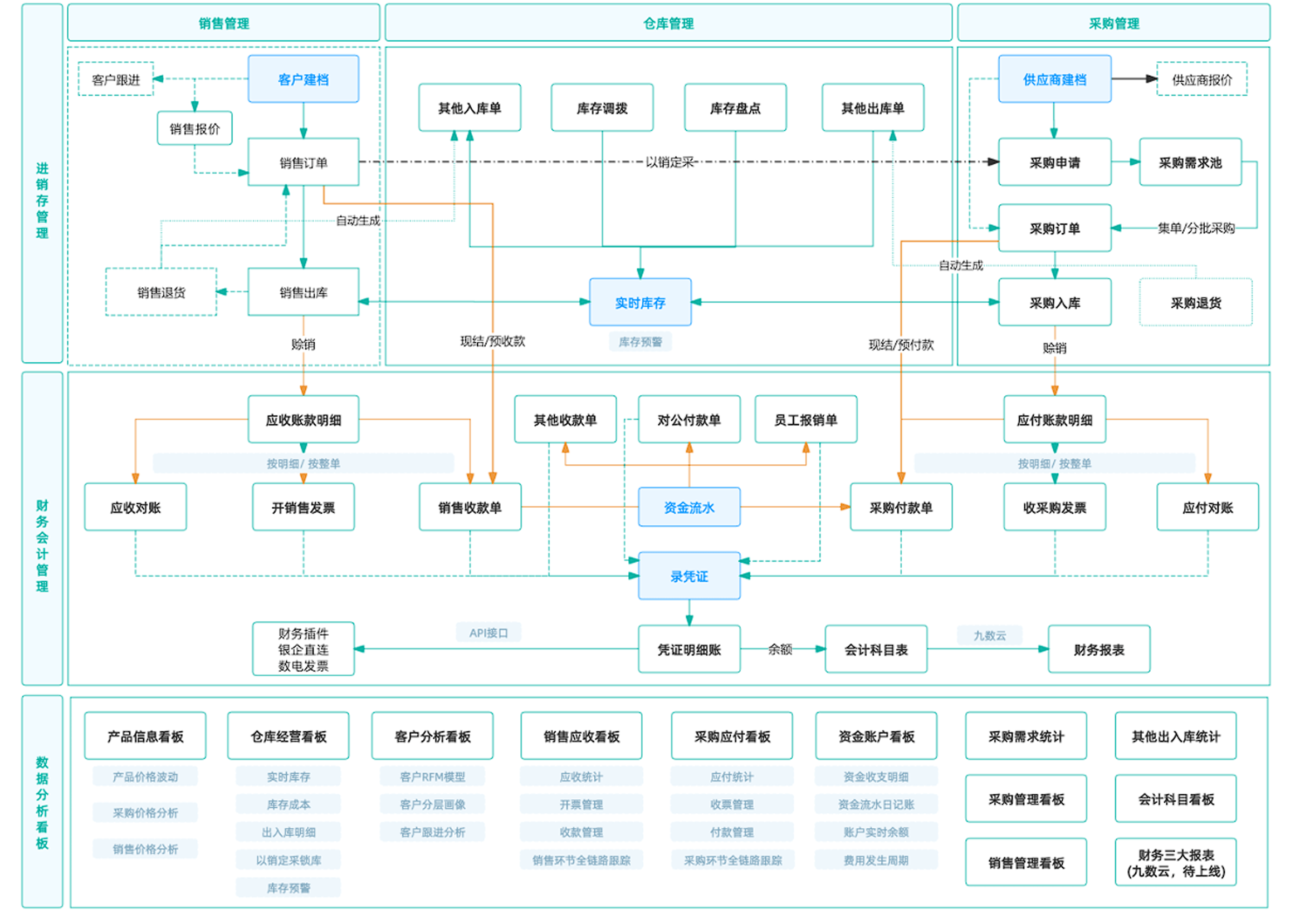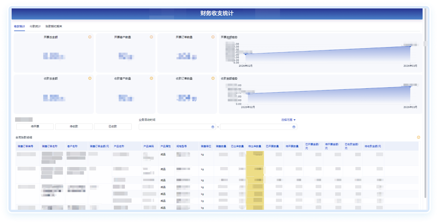 收支自动同步,发票规范管理,核心指标看板可视化。