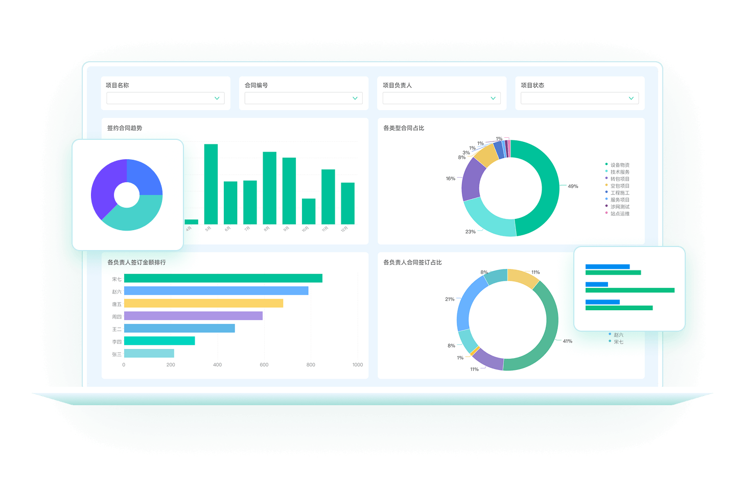 毛利率自动校验,权限精细化,订单签订到收款全跟踪。
